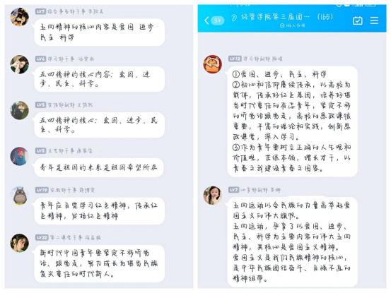 会上,主讲人带领大家重温了有关五四青年节的相关理论知识,紧接着对习近平考察中国人民大学生的重要讲话进行阐述。会议指出,习近平在考察调研时强调“为谁培养人、培养什么人、怎样培养人”始终是教育的根本问题,体现了习近平对培育时代新人的深邃思考和殷切期望。会议着重强调,习近平高度重视青年,大力倡导青年优先发展理念,围绕“什么是时代新人、怎样培养时代新人”等问题作出重要论述。随后,为进一步引导同学们将学习内容付诸实践,主讲人精心为大家设计了相关问题。同学们积极分享对习近平总书记重要讲话的感悟理解,针对作为青年人我们该怎么做展开了激烈讨论。其中陈娟谈到作为青年人我们要树立正确的人生观和价值观,苦练本领,增长才干,以青春之我建设青春之国家的观点受到大家的广泛认同。在讨论中,同学们进一步明确了自己作为时代新人的目标,坚定了自己的理想信念。