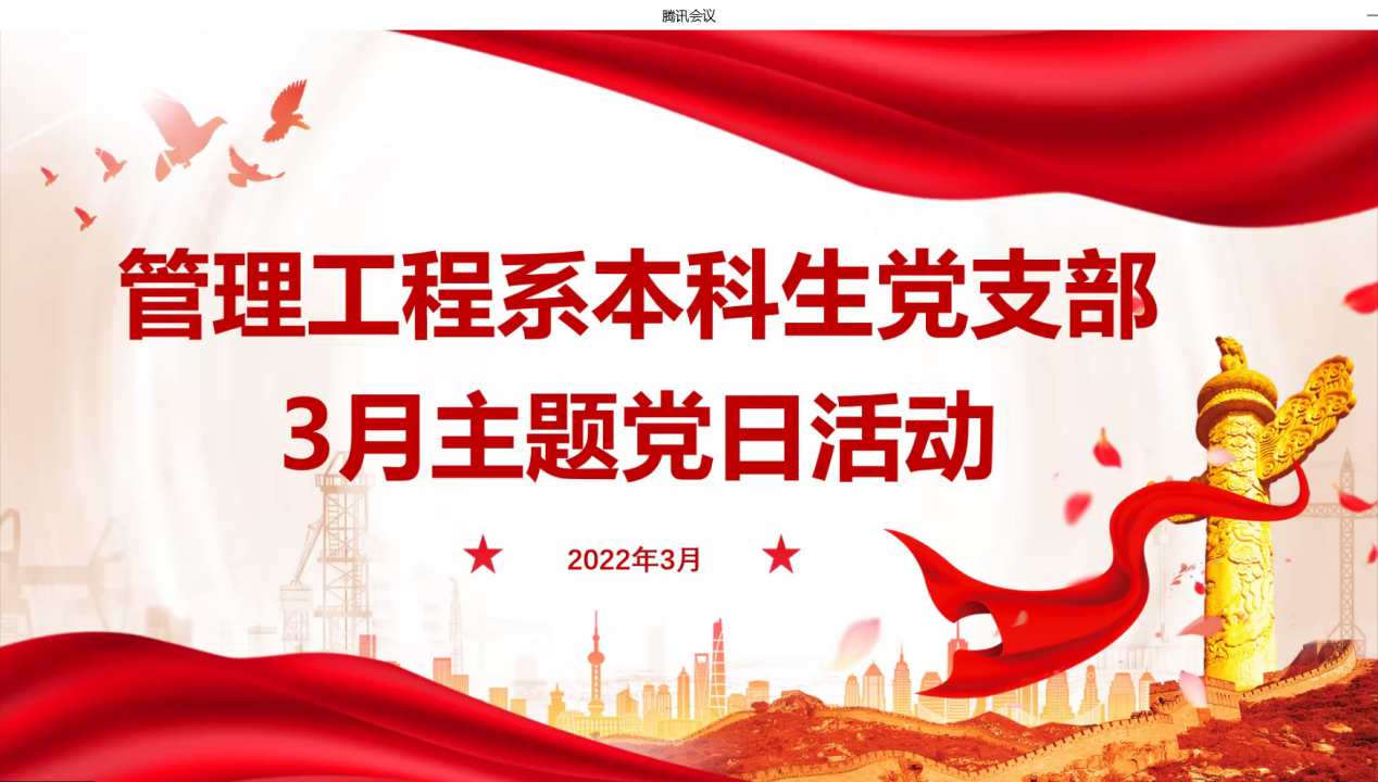 (通讯员:李丹萍)2022年3月31日晚上7点半,williamhill中国管理工程系本科生党支部在线上通过腾讯会议召开三月主题党日活动。参与人员有支部学生党员与预备党员,会议由张华主持。