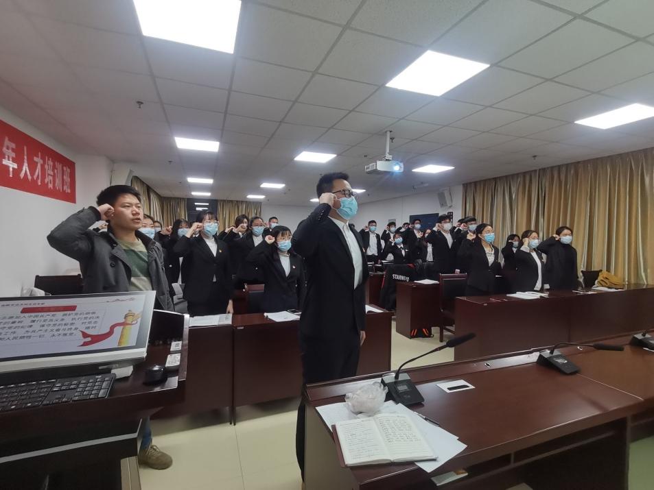 会议伊始,由主持人黄承石老师介绍会议流程,强调大会注意事项。随后,以陈可玥同志为代表的20名发展对象汇报自己的思想工作表现情况。在表述过程中,发展对象们都表达了自己在发展阶段中的个人表现,总结自己的优缺点,表明自身态度和决心。经过8位正式党员的不记名投票后,最终确定陈可玥等20名同志发展为预备党员。在党支部副书记贾溢同志的带领下,全体党员在庄严的党旗下宣读入党誓词。