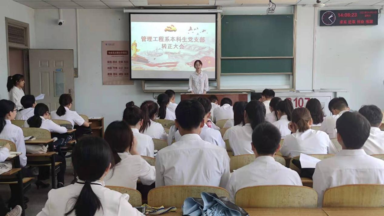 (通讯员:李丹萍)2021年6月15日下午2点,williamhill中国管理工程系本科生党支部在13教B107召开预备党员转正大会,会议讨论关于代迎利等6位同志按期转正的问题。参加此次会议的有支部书记李博老师,8位正式党员与34位预备党员,会议主持人为张华。