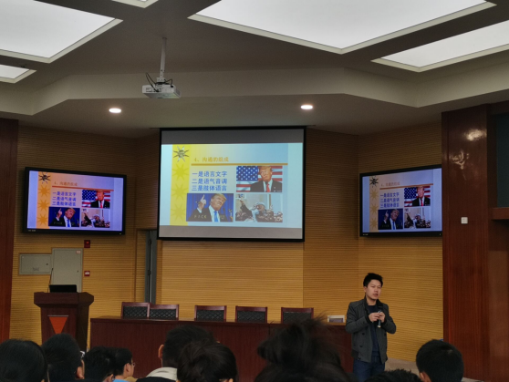 首先,由培训负责人团委学生会周强胜介绍本次培训讲师及培训目的和要求。随后黄承石老师开始第一部分的培训分享,他向同学们分享的是“沟通的艺术”。黄老师以“为什么要沟通?”导入主题,然后从定义、特点、组成、作用等方面做重要解读。最后从把握人性弱点,克服有效沟通障碍,学会交谈、尊重、赞同、聆听等六个维度告诉同学们在生活中应如何有效沟通。