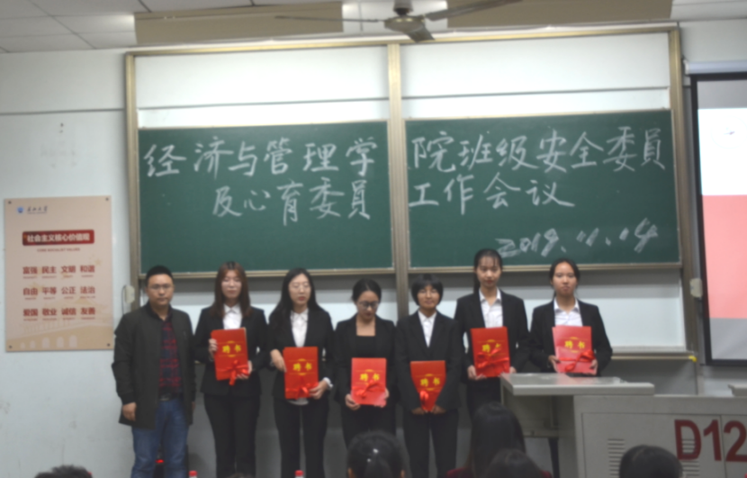 会议首先为班级安全员、心育委员颁发了聘书。紧接着,市销11801班覃欣然同学作为安全员代表谈到“要认真履行职责,发现任何异常,第一时间与老师联系,做好班级安全工作,协助老师做好学院安全工作。”作为心育委员代表,国贸11802班姚玉晶同学说“心育委员首先自己要有良好的心理素质,才能更好更快更及时地发现同学们的心理问题,要时刻关注、关爱班级的每一位同学”。
