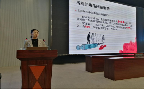首先,桂凯丽老师提出“健康人生,绿色无毒”的观点,为同学们介绍毒品的基本知识及当前毒品问题形势,并向同学们展示了许多新型毒品,希望大家能够正确认识毒品。同时,她还教育同学们如何去拒绝毒品、认识毒品的危害性。