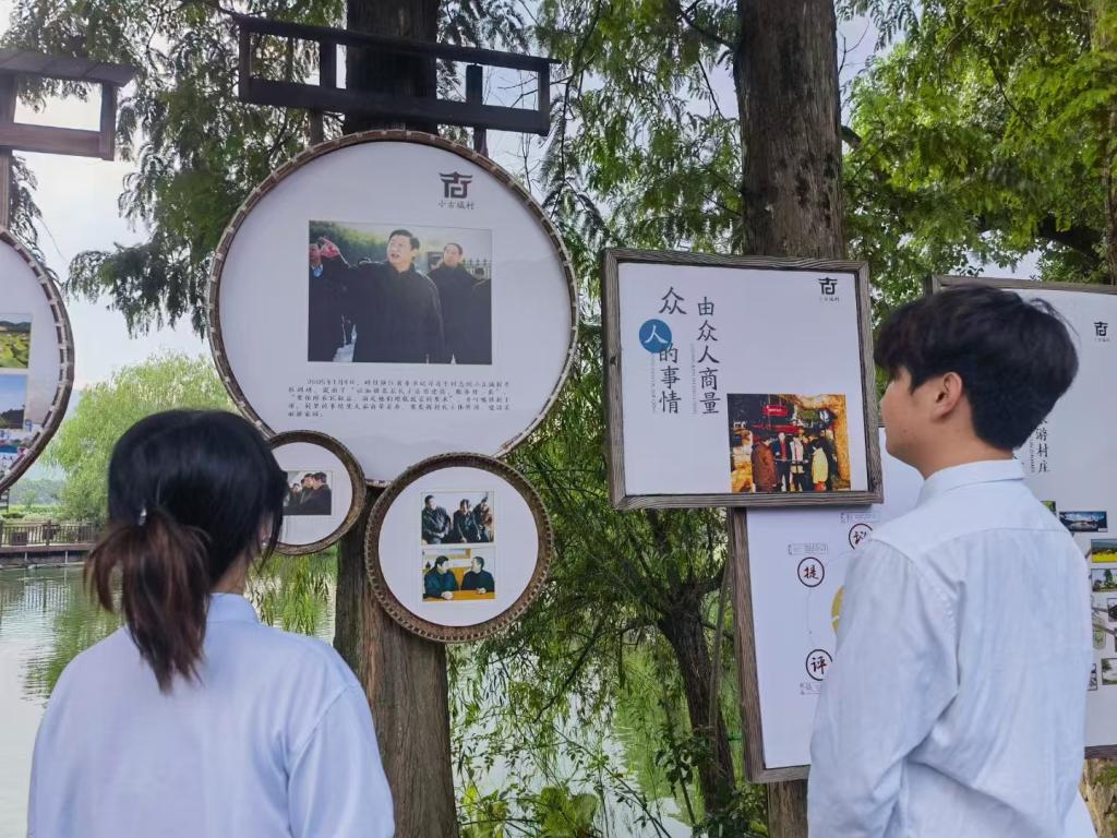 在杭州市余杭区径山镇小古城村和四岭村,团队深入调研了“千万工程”的成功经验,追寻基层民主发展的足迹,学习了乡村治理智慧。团队成员们通过实地考察、访谈座谈等形式,深入了解了当地美丽乡村建设、农文旅产业融合发展等情况,为乡村振兴建设贡献了财经类学子的青春力量。此外,实践团还结合实地情况为四岭村打造了特色文创及衍生纪念品,并拍摄了相关思政视频,为传承红色记忆、赓续红色血脉留下了宝贵资料。