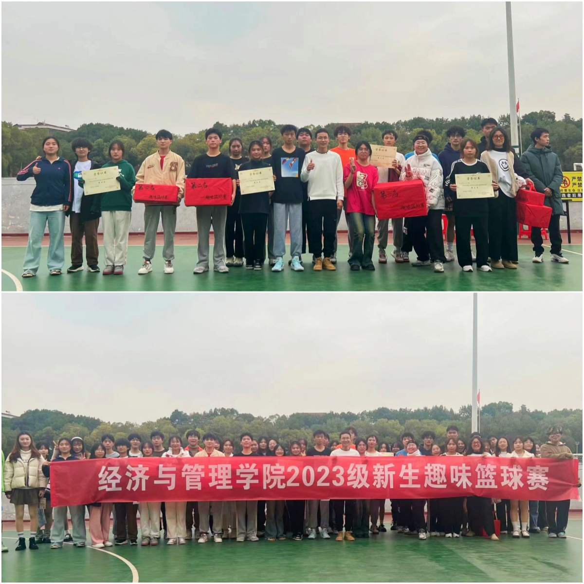 热血青春,奋斗拼搏。12月9日下午14时,williamhill中国2023级新生趣味篮球赛决赛在Williamhill威廉希尔西校区篮球场举行。经过前期12场比赛的层层角逐,经济类32301班、经济类32303班、经济类32306班、工商类32305班等四支队伍进入决赛环节。