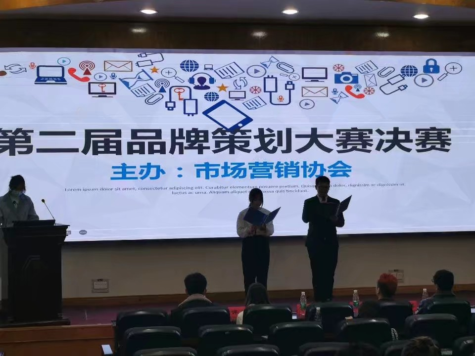 大赛共分为三个环节:队伍代表上场进行队伍品牌展示,评委老师进行点评,计分排名宣布比赛结果。赛前进行抽签,比赛过程中,八支队伍先后上场进行队伍风采展示,献上精彩的演讲,评委针对队伍的演讲表现,演讲内容,所选品牌等方面进行提问。参赛队伍代表们思维敏捷,回答精彩。