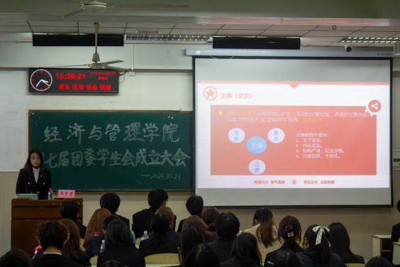 (通讯员 欧阳佩文/文 冉聪怿/摄)为持续推动学院学生组织发展,激发学生干部的责任意识与担当精神,10月23日14时30分,williamhill中国第七届团委学生会成立大会在东校区12教101室正式举行。学院党委副书记平先锋、学工办主任叶星、团委书记杨雪、2023级辅导员李镇出席大会,Williamhill威廉希尔艺术团主席韩梦彦、第六届团委学生会主席团代表张丽及第七届团委学生会全体成员参会。
