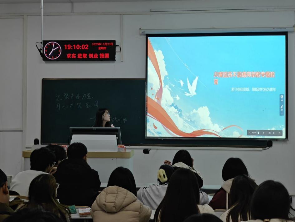 最后,为开展好“共青团员不能信仰宗教”专题教育,各团支部通过领学《中国共产主义青年团章程》相关规定和党的宗教政策,明确共青团员作为坚定的马克思主义者的基本要求,教育引导青年必须旗帜鲜明地坚守唯物主义世界观。