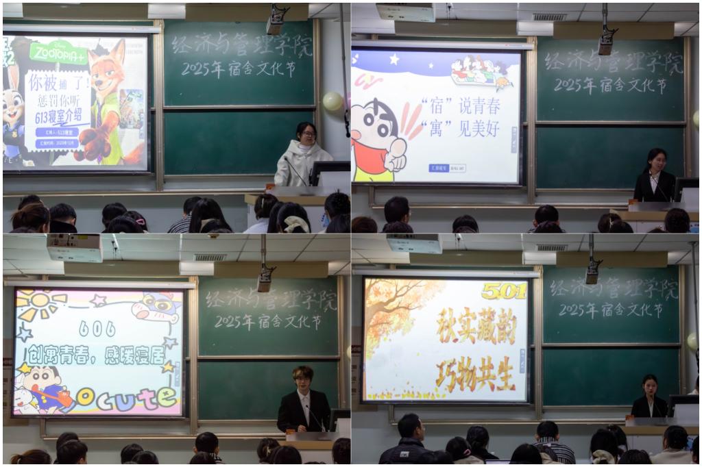 决赛分为上、下半场进行,答辩过程中,十个宿舍各显神通,有的通过对闲置物品的改造,展示宿舍装饰的环保巧思与功能布局,让绿色理念与寝居温情双向奔赴;有的以情景短剧的形式,还原宿舍集体学习、共同成长的温馨场景,生动诠释团结协作的深刻内涵;有的通过展示宿舍成员亮眼的学业成绩和志愿服务活动掠影,彰显了积极进取、乐于奉献的宿舍文化内核,让正能量在现场持续传递,赢得了在场师生的阵阵掌声。