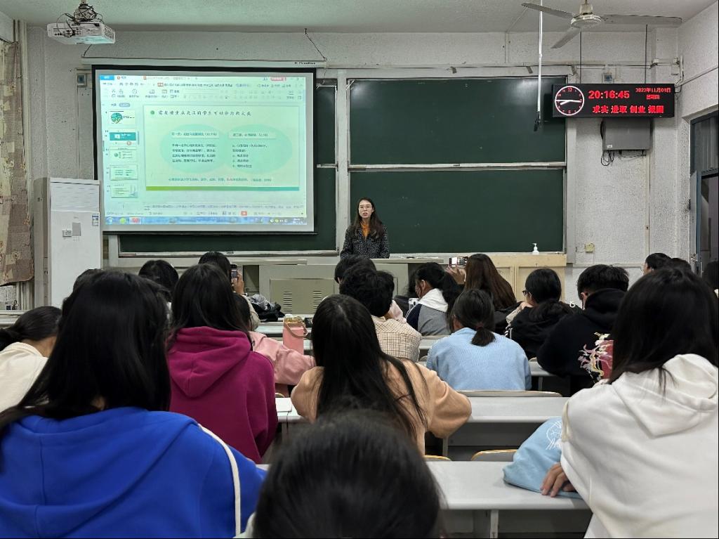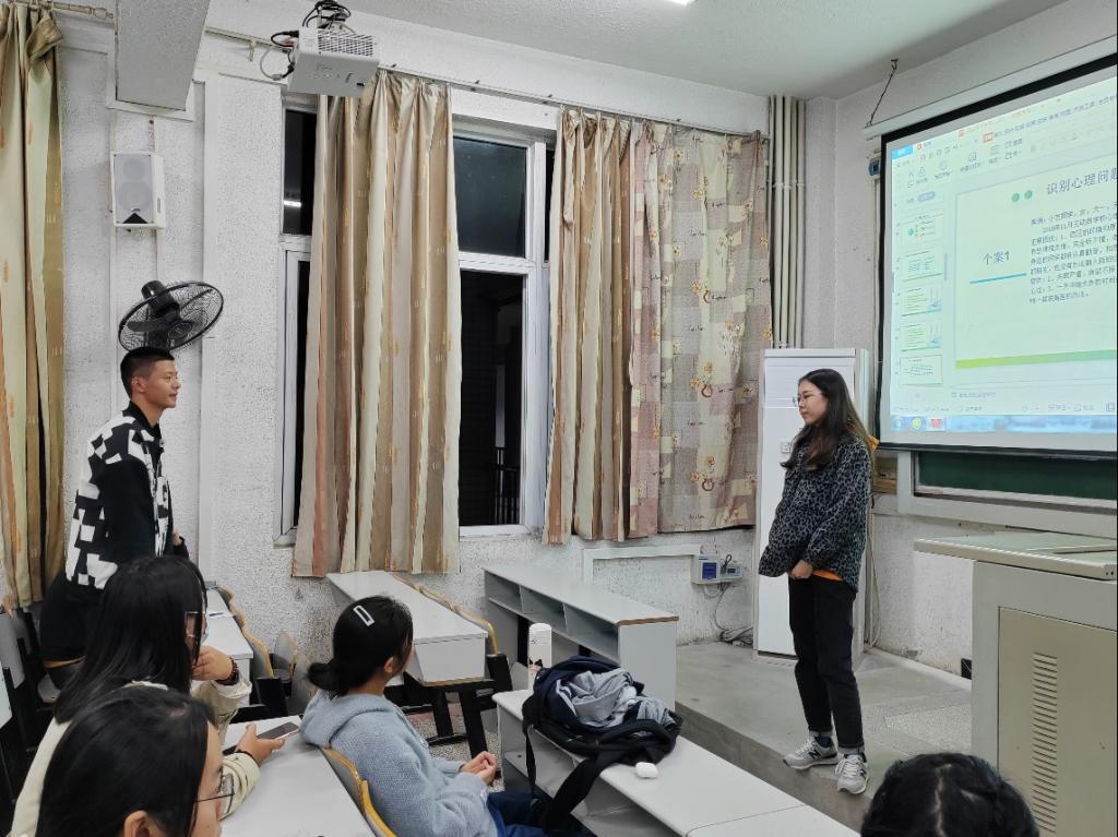 方含之老师围绕认识心理健康、有意识地关注重点学生、善于自助和助人三个方面内容,援引自身经历,多角度、深层次分析大学生中存在的各种心理问题,就大学生面临的困难情境进行生动有趣的讲解。会上重点介绍心理健康的标准、大学生的身心特点、大学生常见心理问题的识别与应对等内容。