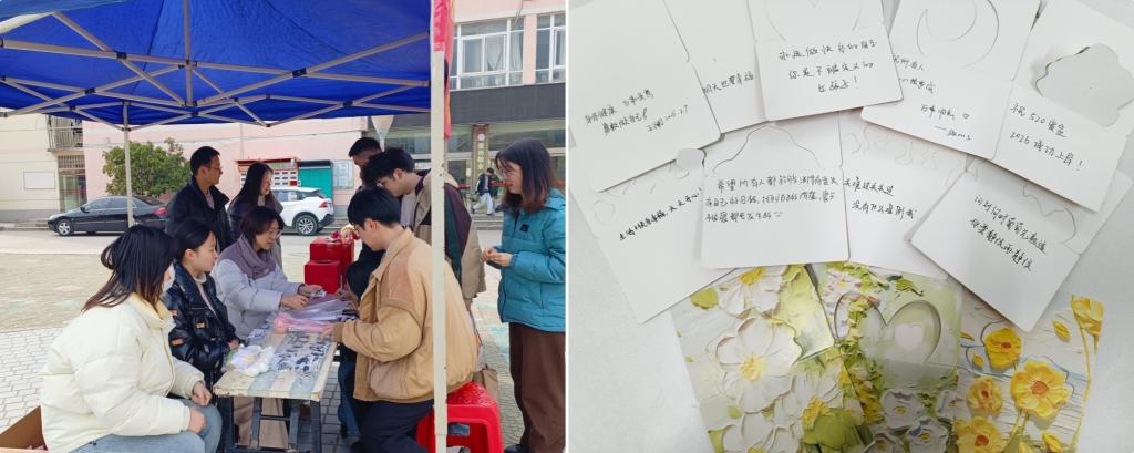 前期,学院团委学生会心理健康育人部为本次活动做好了充分准备,旨在通过活动普及心理健康知识,鼓励同学们展现自我,提升自信,绽放青春魅力,营造尊重、理解、关爱的校园氛围。在活动现场,最受同学们欢迎的当属“祝福书写与心声传递”环节。同学们把内心想表达的声音化作文字,书写在祝福卡片上,同时又在卡片箱中抽取来自他人的祝福,既是一次祝福交换,也是一次情绪价值的传递与共享。一句句暖心的话语,一张张灿烂的笑脸,构成了校园里一道亮丽的风景线。充满正能量的祝福语,不仅表达了同学们对彼此的关心和祝福,也展现了他们积极乐观、健康向上的精神风貌。