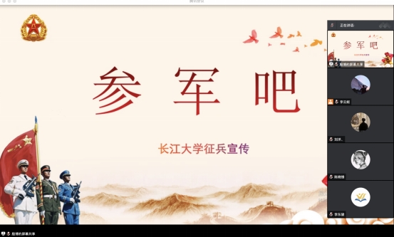 (通讯员:郜鑫雅)为进一步推进我院学生征兵政策宣传工作,帮助学生们了解和掌握应征入伍的相关政策,我院于2022年5月26日下午16:00,开展了线上征兵政策宣讲活动。此次宣讲会由辅导员李云妮老师主持,我院征兵宣讲员殷博同学和李东俊同学宣讲,今年报名应征和有入伍意愿的学生共同参与。