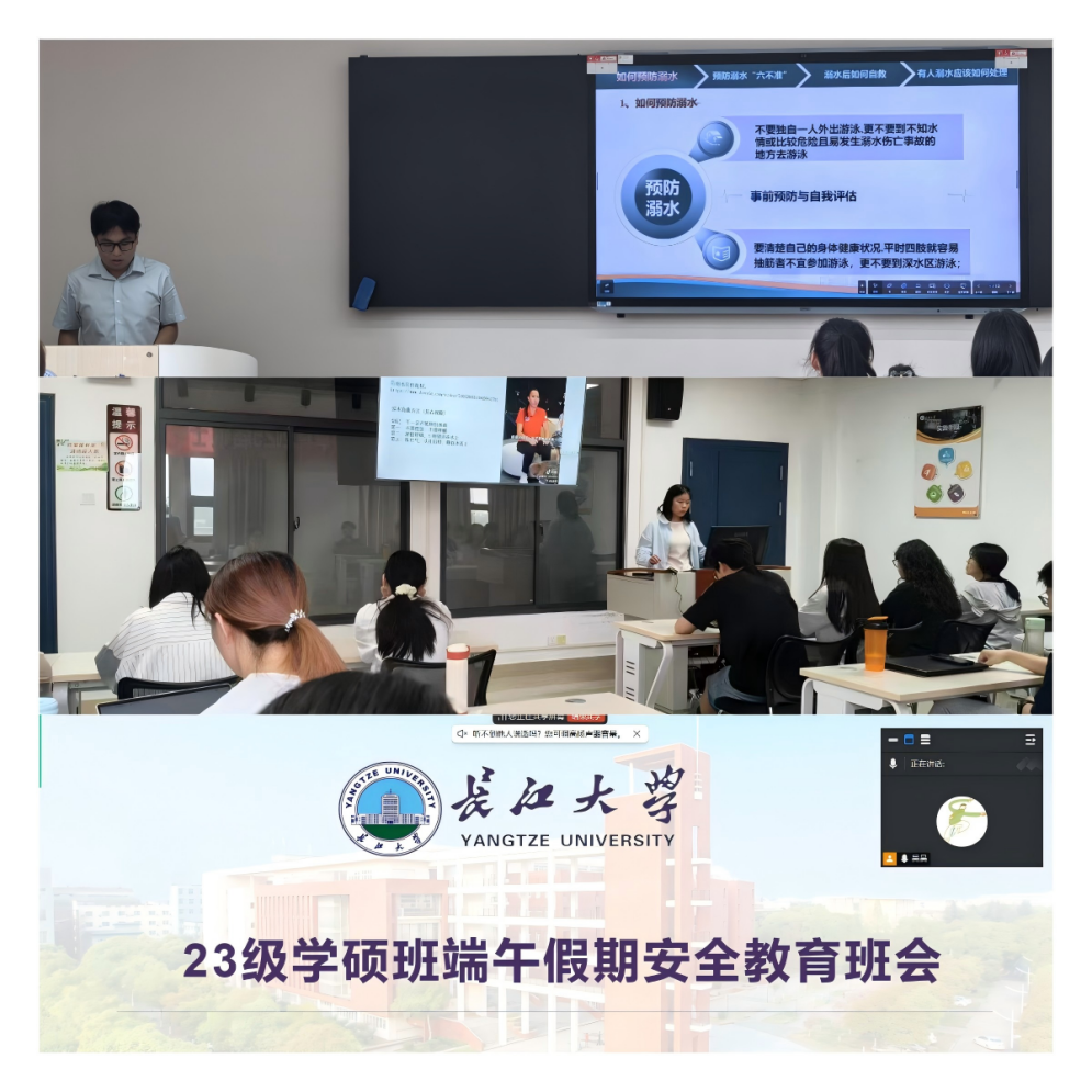 班会中,研一、研二重点聚焦假期安全教育。以防溺水、防诈骗、生命安全、交通安全、食品安全、财产安全和消防安全为核心内容,通过分享真实案例及播放相关微视频的形式,生动直观地向同学们敲响安全警钟。在防溺水安全教育环节,班长们反复强调远离危险水域的重要性,提醒大家牢记防溺水“六不准”,详细讲解防溺水知识和自救互救技能,让“珍爱生命,预防溺水”的理念深深扎根于每位同学心中。