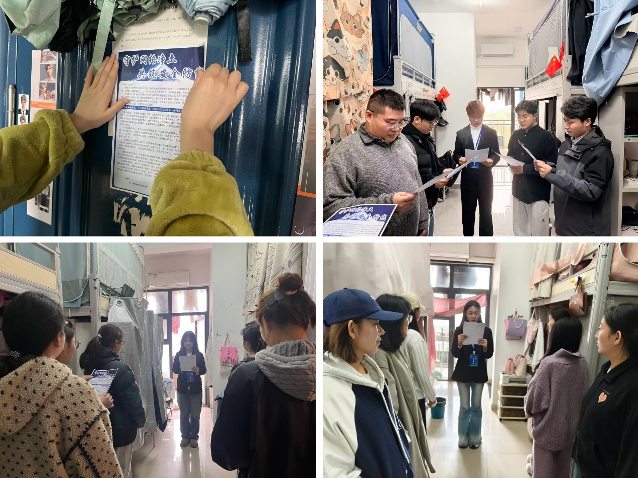 活动尾声,宣讲团向各寝室发放网络安全宣传材料,同学们签名承诺后将材料张贴在寝室醒目位置,让网络安全意识入脑入心。本次活动切实提升了研究生的网络安全防范意识与防护能力,后续学院将持续推进安全教育常态化开展,进一步织密筑牢校园安全防护网。