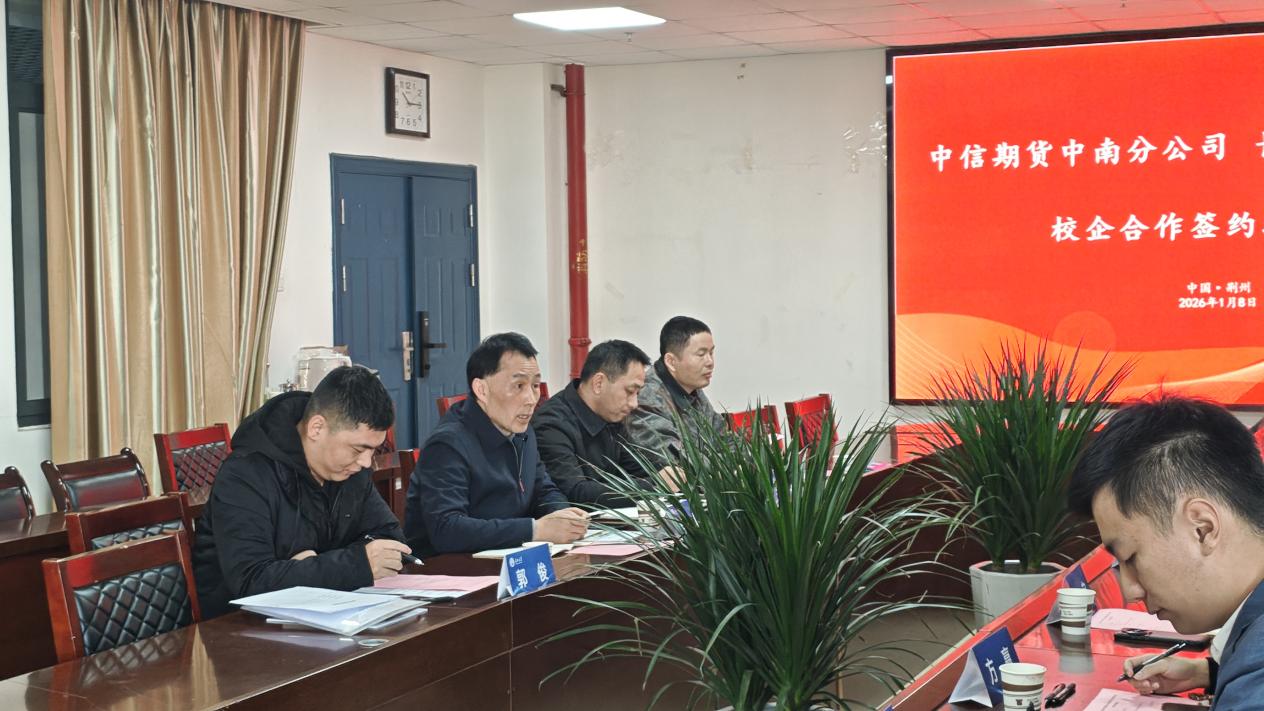 (通讯员 欧阳佩文 / 文 严康 / 摄)为进一步深化教育教学改革,完善实践教学体系,拓宽毕业生高质量就业渠道,1 月 8 日上午,williamhill中国与中信期货有限公司中南分公司(以下简称 “中信期货中南分公司”)在东校区文科楼505会议室隆重举行校企合作签约暨就业基地授牌仪式。williamhill中国党委书记李喜成、党委副书记平先锋、学工办主任叶星、就业专干郭俊,中信期货中南分公司党支部书记兼总经理苏仲博、副总经理冯宇、党支部组织委员兼人力资源专岗方赢、渠道业务部资深业务总监陈厚烨,以及中信银行荆州分行行长万旌、零售分管行长徐娟、办公室主任杨露露等校企双方代表出席了本次活动。