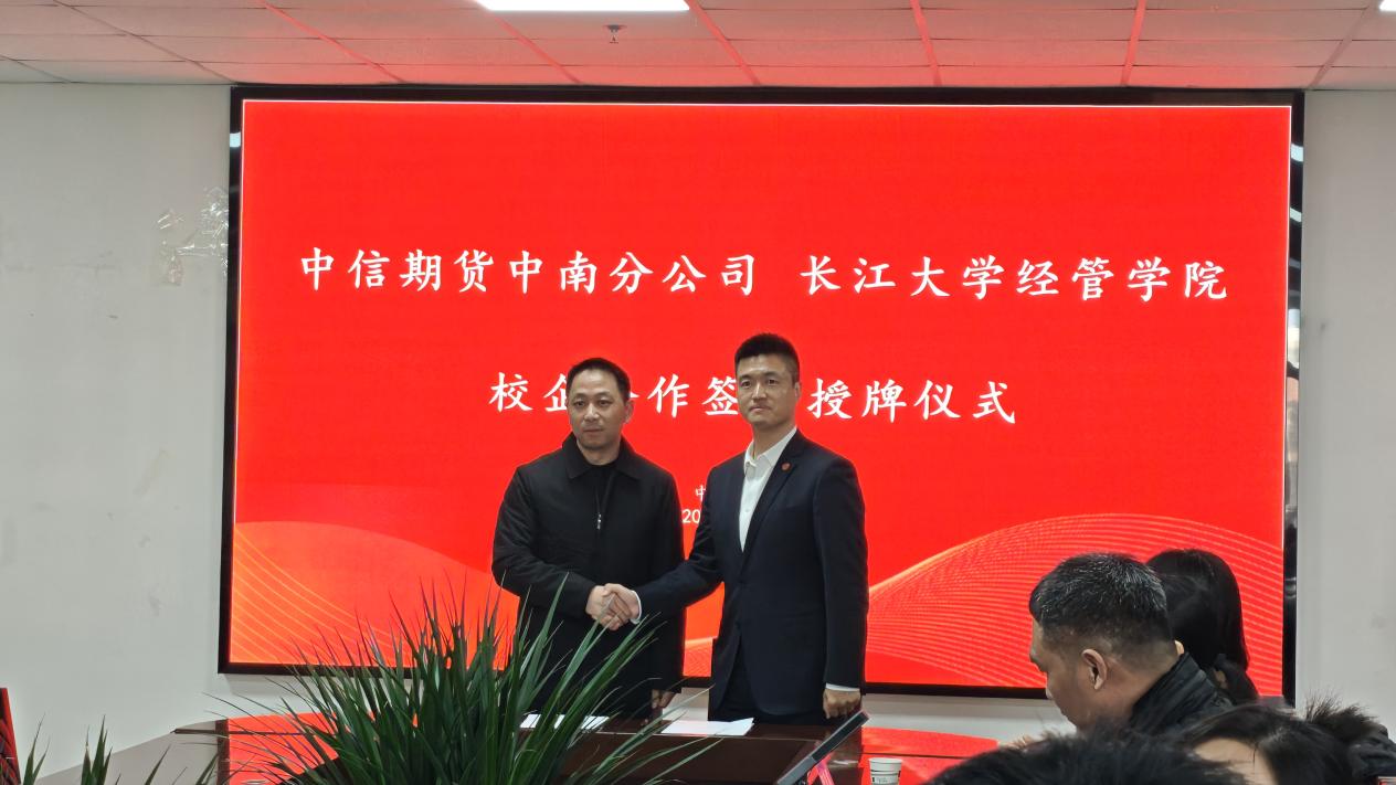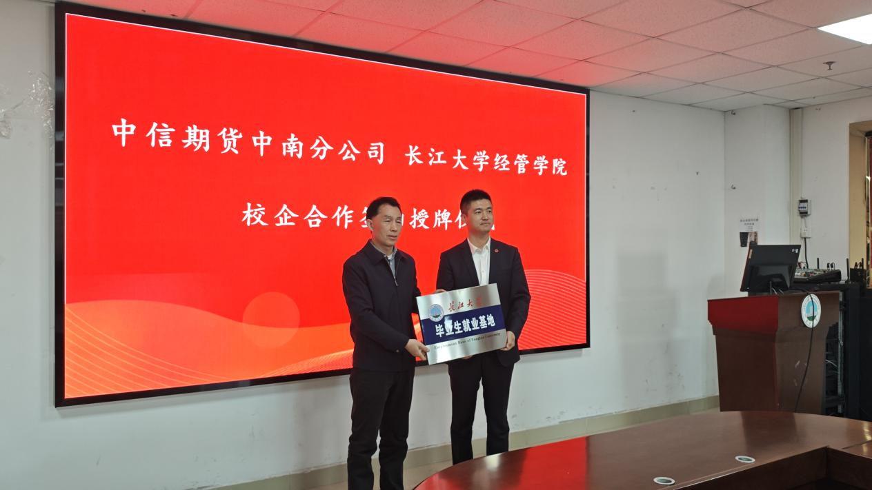 在全体与会嘉宾的共同见证下,校企双方代表正式签署《校企合作协议》。随后,学院向中信期货中南分公司授予 “Williamhill威廉希尔毕业生就业基地” 牌匾,标志着双方合作迈入实质性、规范化发展的新阶段,为学院学子搭建了直达优质企业的就业桥梁,也为校企协同育人奠定了坚实基础。