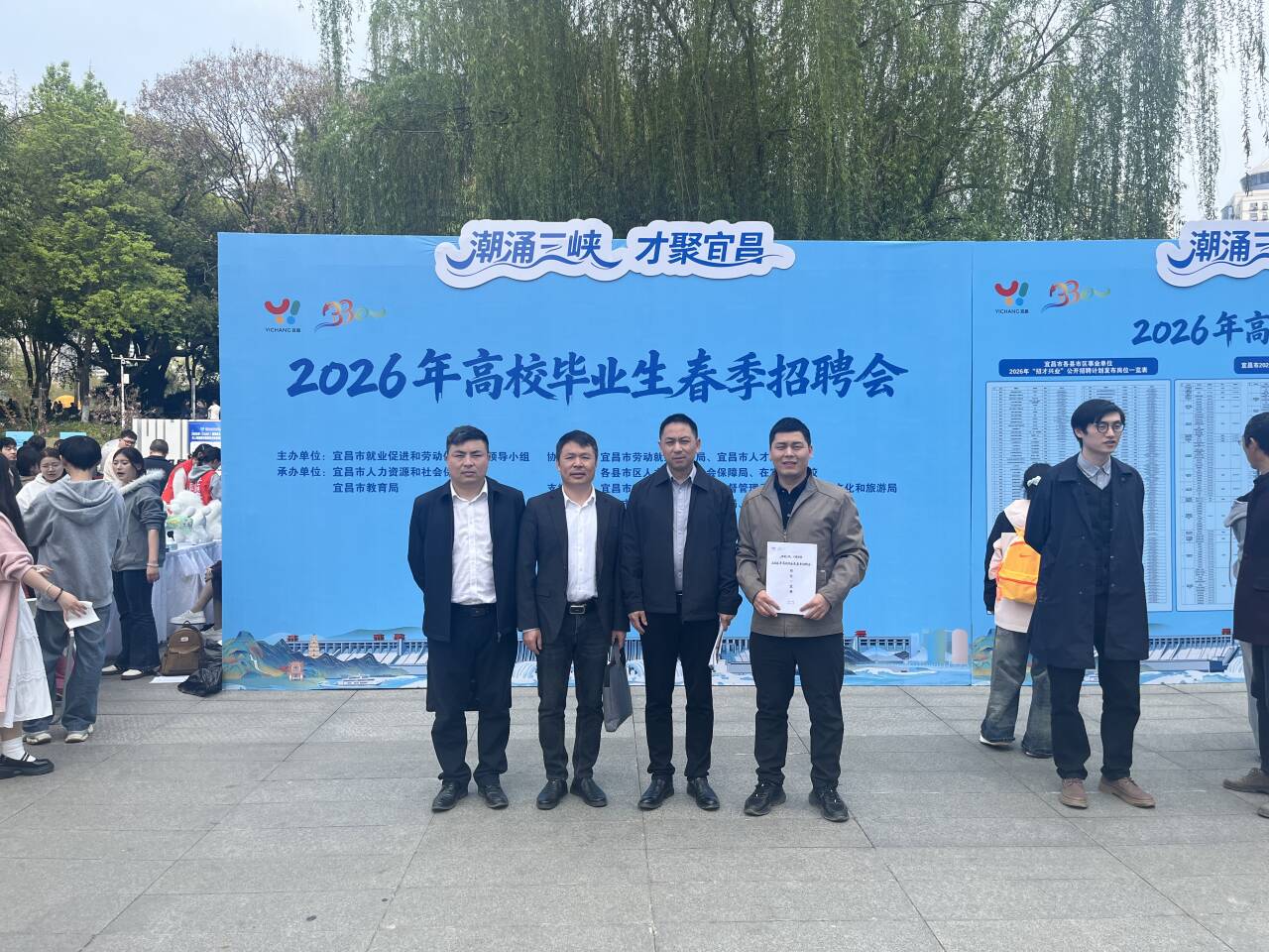 (通讯员 郭俊)为深入落实 “稳就业、保就业” 工作部署,拓宽 2026 届毕业生就业渠道,深化校地、校企合作,3 月 31 日上午,Williamhill威廉希尔就业处副处长赵长勇、医学部党委副书记陈磊、经济管理学院党委副书记平先锋、就业专干郭俊一行受邀赴宜昌,参加 “潮涌三峡,才聚宜昌”2026 年高校毕业生春季招聘会。