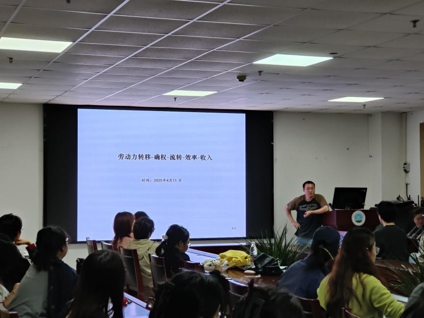 姚志老师以《劳动力转移-确权-流转-效率-收入》为主题进行学术分享。他梳理了劳动力转移与土地制度间的互动机制,以土地确权为切入点,指出确权政策如何通过明晰产权促进农地流转市场发展,进而提升农业生产效率并增加农民收入。在学术写作经验分享方面,他提出:一是从学术研究延伸到学术研究,二是为政策实施提供依据,三是提出新的理论思想。姚老师以自身的学术写作和投稿经历为例,鼓励同学们去了解本专业热点话题,再通过大量阅读相关文献来找到自己的方向和选题,最终完成论文写作。