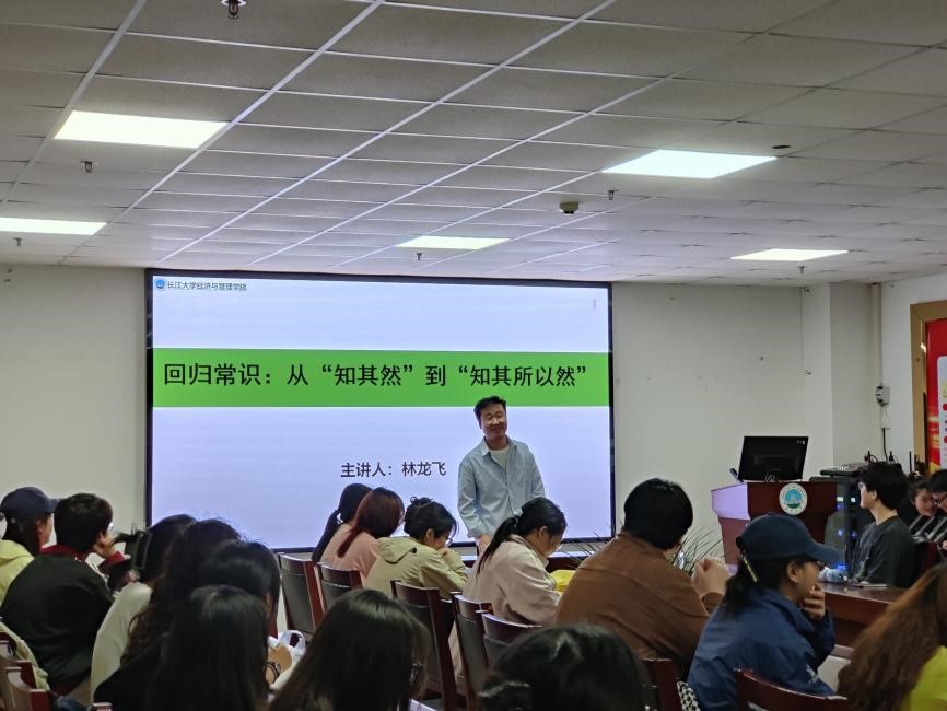林龙飞老师以《回归常识:从“知其然”到“知其所以然”》为主题进行学术分享。首先从模型过度参数化导致的“数学精确性幻觉”、政策设计中忽视农民实践理性的典型案例、国际经验移植中的“橘逾淮为枳”现象三个维度指出学术研究非常识的认知误区。其次,从亚里士多德“第一原理”与农林经济基本规律方面论述了回归常识的认知维度。最后,以涉农国际贸易为案例,分析了研究过程中回归常识的逻辑和基本步骤,并提出今后学术研究与事务判断过程中回归常识的重要建议。