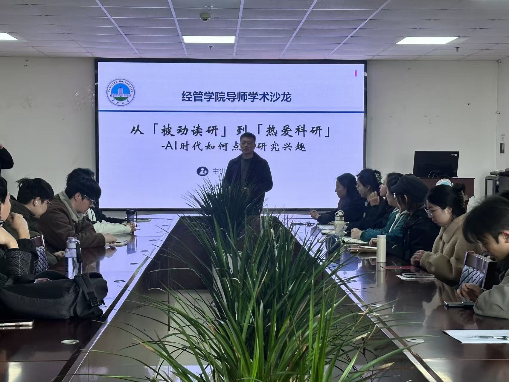 (通讯员 陈情阳)2026年3月12日下午,williamhill中国第二十一期“求实导师学术沙龙”在文科楼505会议室举行。王华强副院长担任主讲人,讲座主题为“从被动读研到热爱科研—AI时代如何点燃研究兴趣”,学院研究生代表40人参与活动。