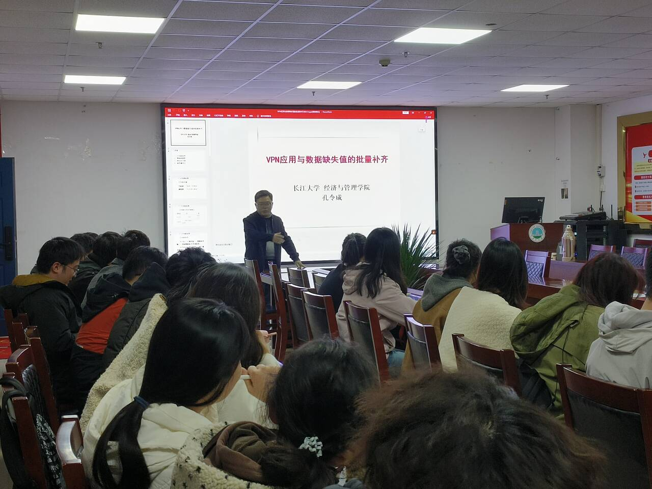 (通讯员 卫美芳)为帮助研究生掌握科研数据处理的实用技能,提升科学研究效率,2026年3月12日晚19:00点,williamhill中国第二十二期求实导师学术沙龙在文科楼505会议室顺利举行。本次沙龙由孔令成博士主讲,主题为“VPN应用与数据缺失值的批量补齐”,吸引了众多研究生踊跃参与。