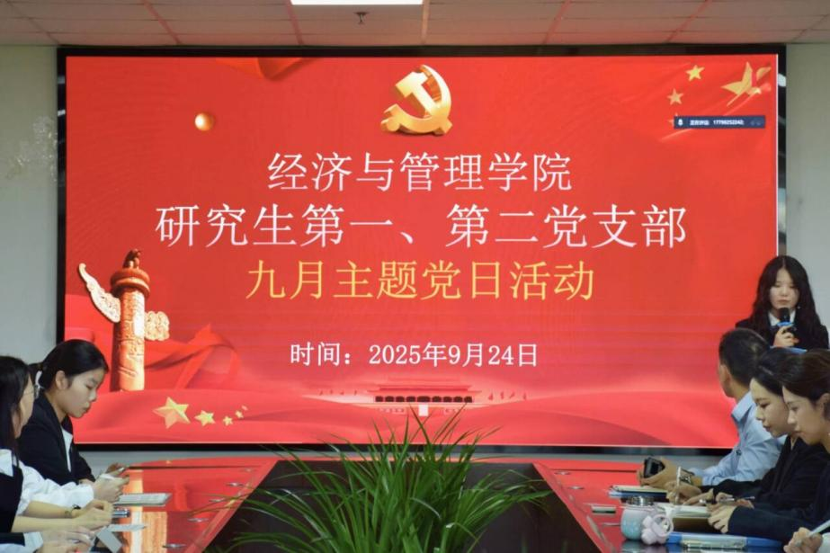 (通讯员 索嘉驹)9月24日下午,学院研究生第一、第二党支部于文科楼505会议室开展2025年9月主题党日活动。本次活动由研究生第二党支部副书记吴轶中主持,学院党委副书记、研究生第一党支部书记平先锋,学院第一、第二党支部全体党员参加活动。
